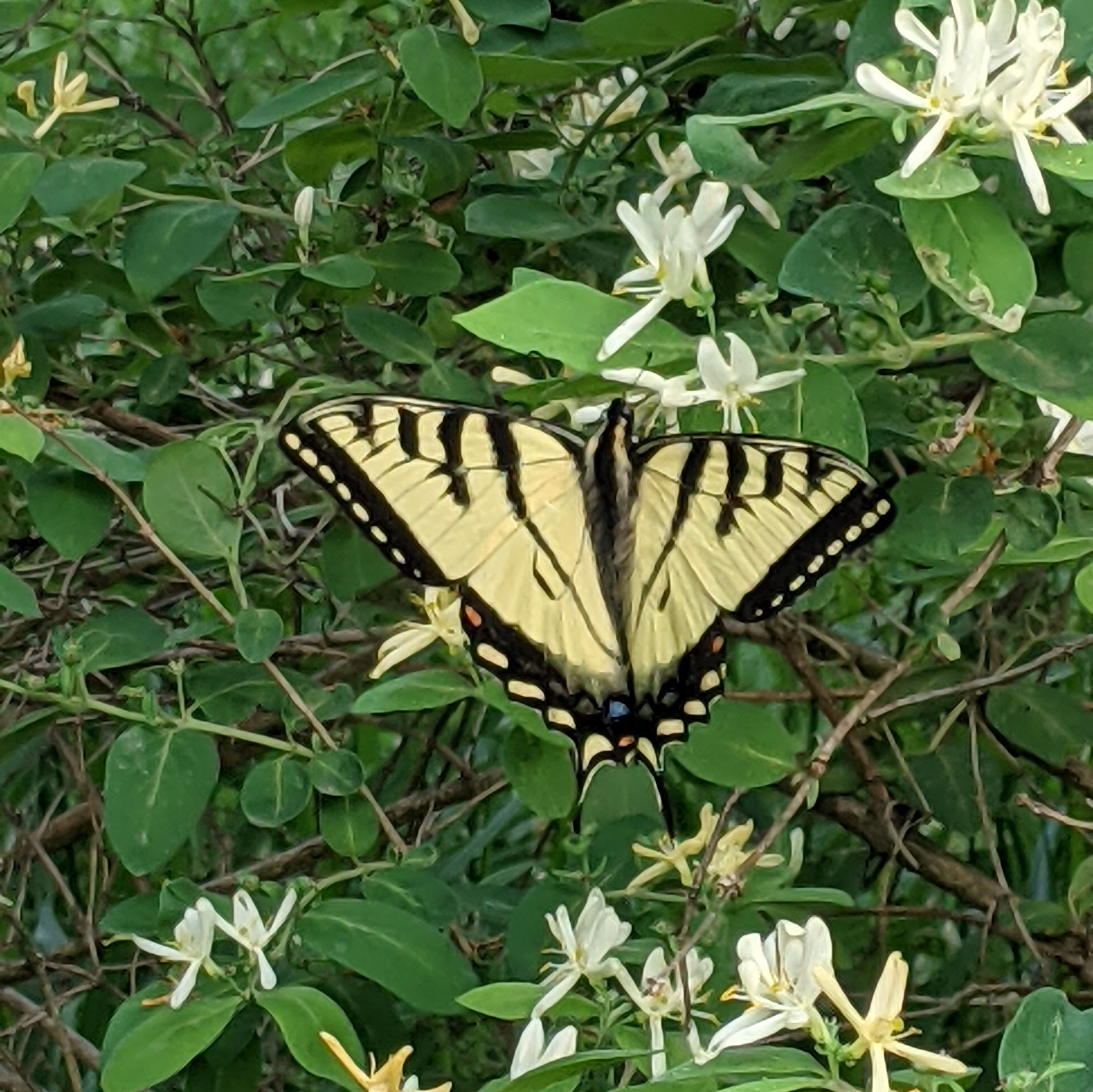 2. Nice haiku! I’m comparing the two pics and still having trouble seeing distinction between the Canadian and the Eastern Tiger Swallowtails but it won’t stop me from trying to. Why do you think it is important to know the difference? I have no honeysuckle in the yard but I saw one of these two last week near the lilacs and malva zebrina. I do have an increasing amount of milkweed because I purposely avoid it with the mower at the edges of the lawn.