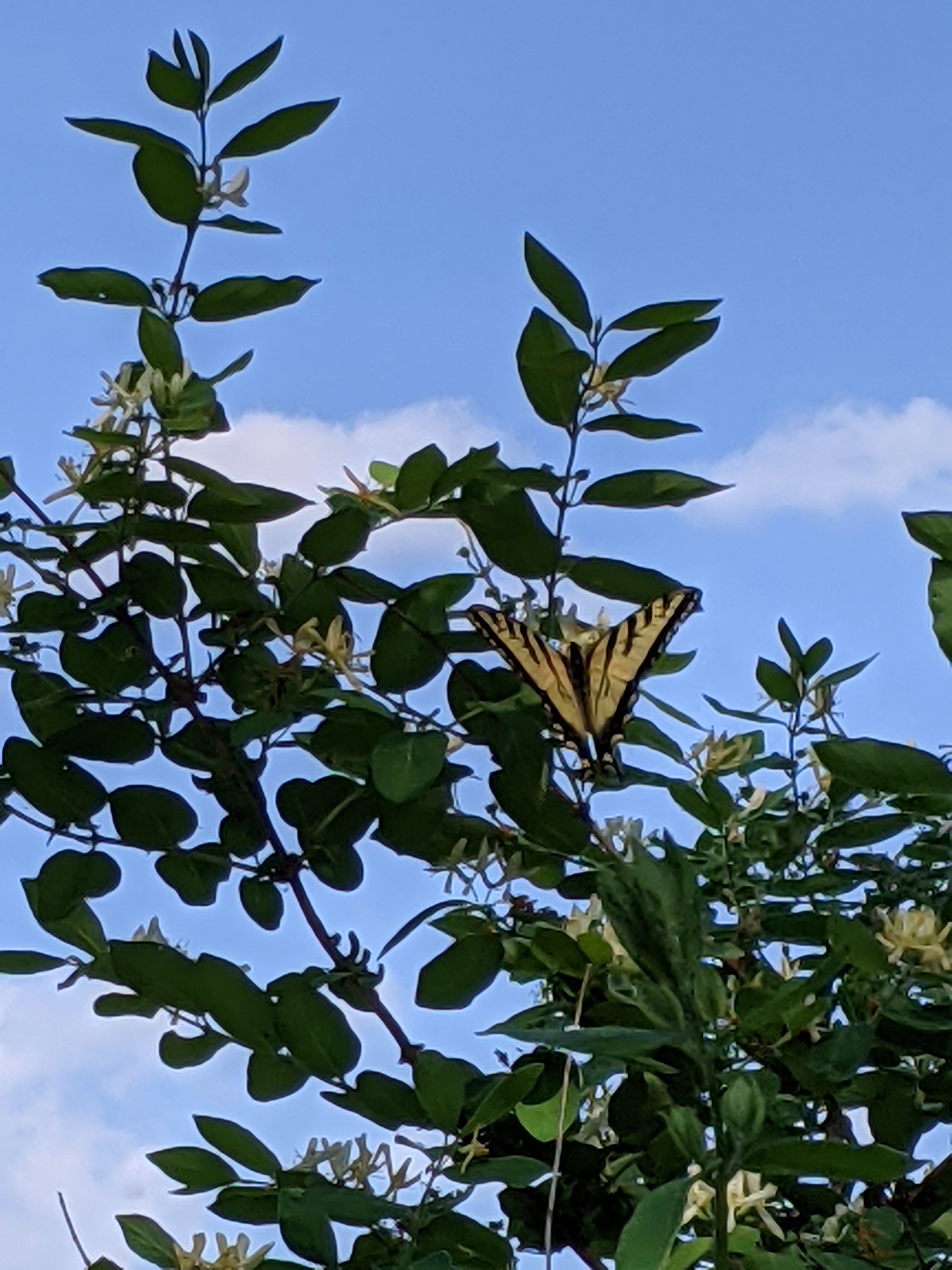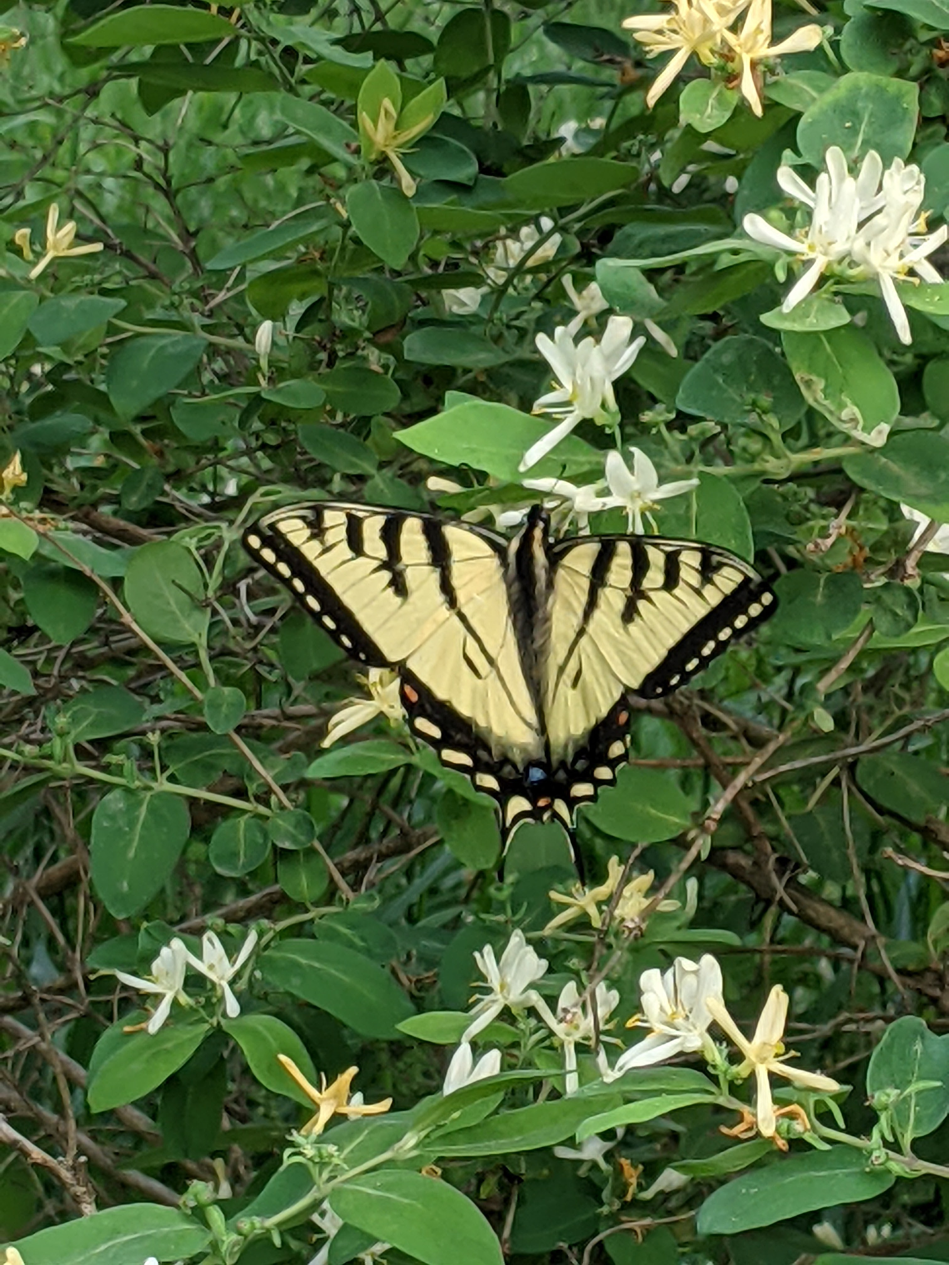 Earlier this week I posted about Honeysuckles and the importance of pollinator gardens. In that post, I wrote a haiku that mentioned the Monarch butterfly (Danaus plexippus).  Well, as it turns out the Monarch butterfly might have been a perfect fit for my haiku, but it wasn’t what I was seeing.  I was actually watching an Eastern Tiger Swallowtail (Papilio glaucus).(1)