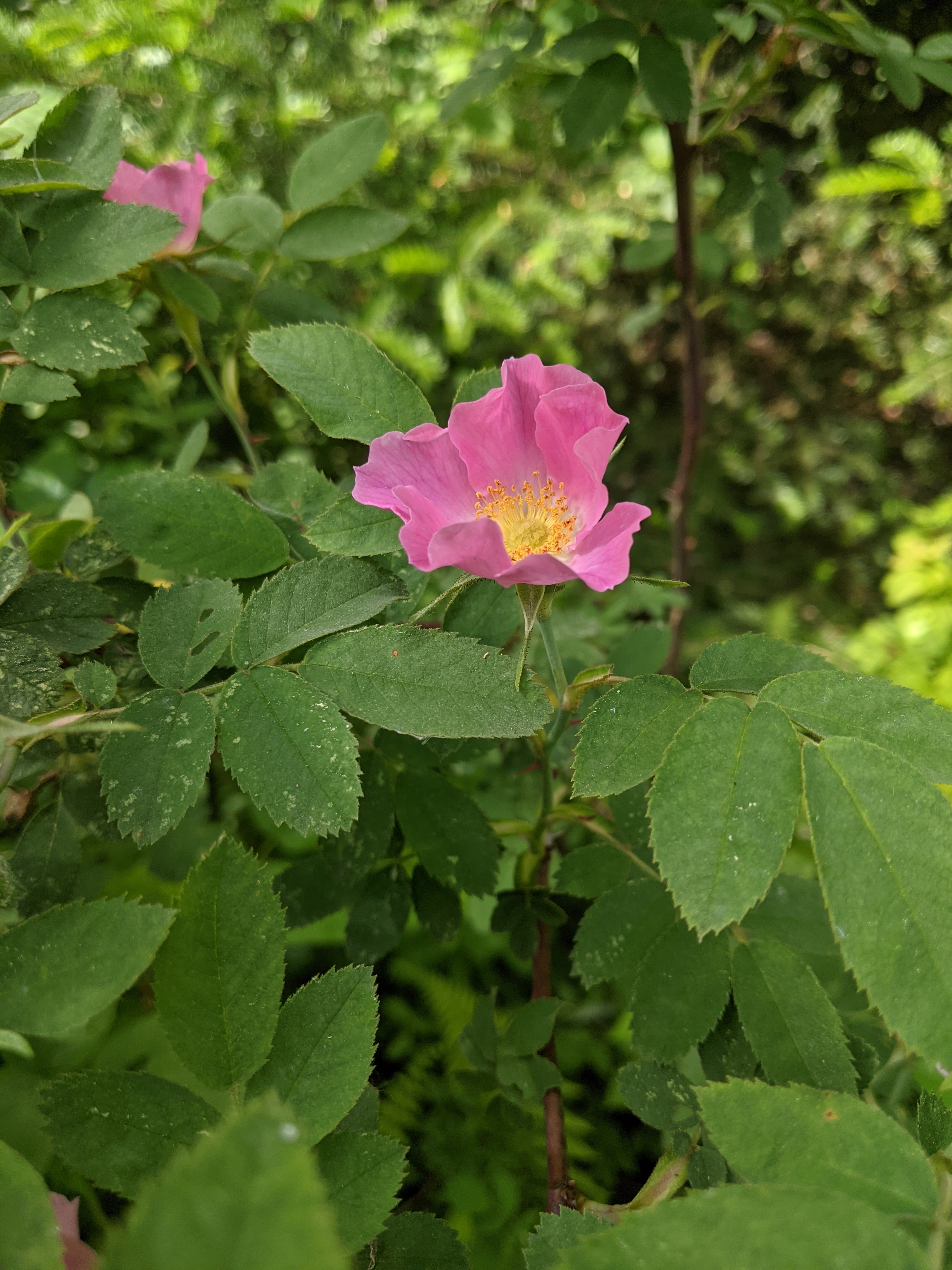 The Swamp Rose (Rosa palustris) is a perennial shrub that can grow up to 7 feet tall and is native to the eastern United States. As the name suggests, this plant prefers moist, acidic soil. The Swamp Rose flowers often grow to be about one or two inches in diameter and sparsely populate the stems.(1)