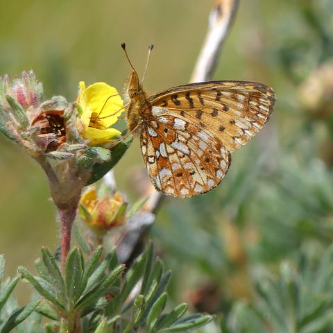There are 30 different species of butterflies in the larger family of butterflies known as Fritillaries. Fritillaries are further divided into the greater fritillaries and lesser fritillaries. Silver-bordered Fritillary belongs to the lesser fritillaries group and is one of 16 different species. An interesting thing about the Silver-bordered Fritillary name is that its scientific genus name “Boloria” means brushed foot and its species name “selene” is said to reference the Greek Goddess of the moon Selene.(1,3,4)