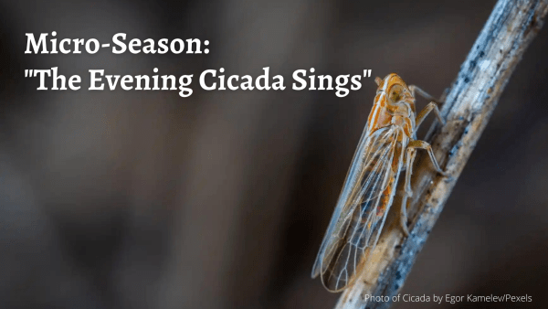 We have entered the micro-season of “The Evening Cicada Sings”. This is the first micro-season of the mini-season of First Autumn. As a way to celebrate this season, we will learn about the taxonomy of the cicada and listen to some cicada songs. After that, we will read some seasonal haiku by Basho, Issa, and readers of The Washington Post.